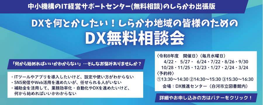 白河市立図書館内にあり、主に起業・創業支援、DX、知的財産などの業務を行っております。