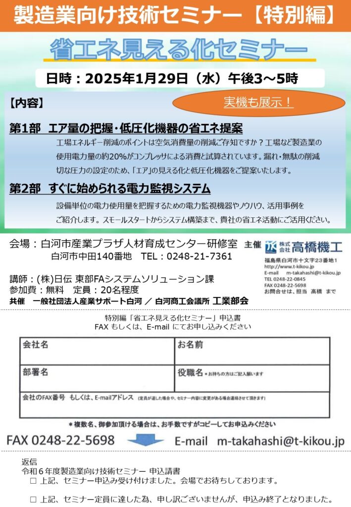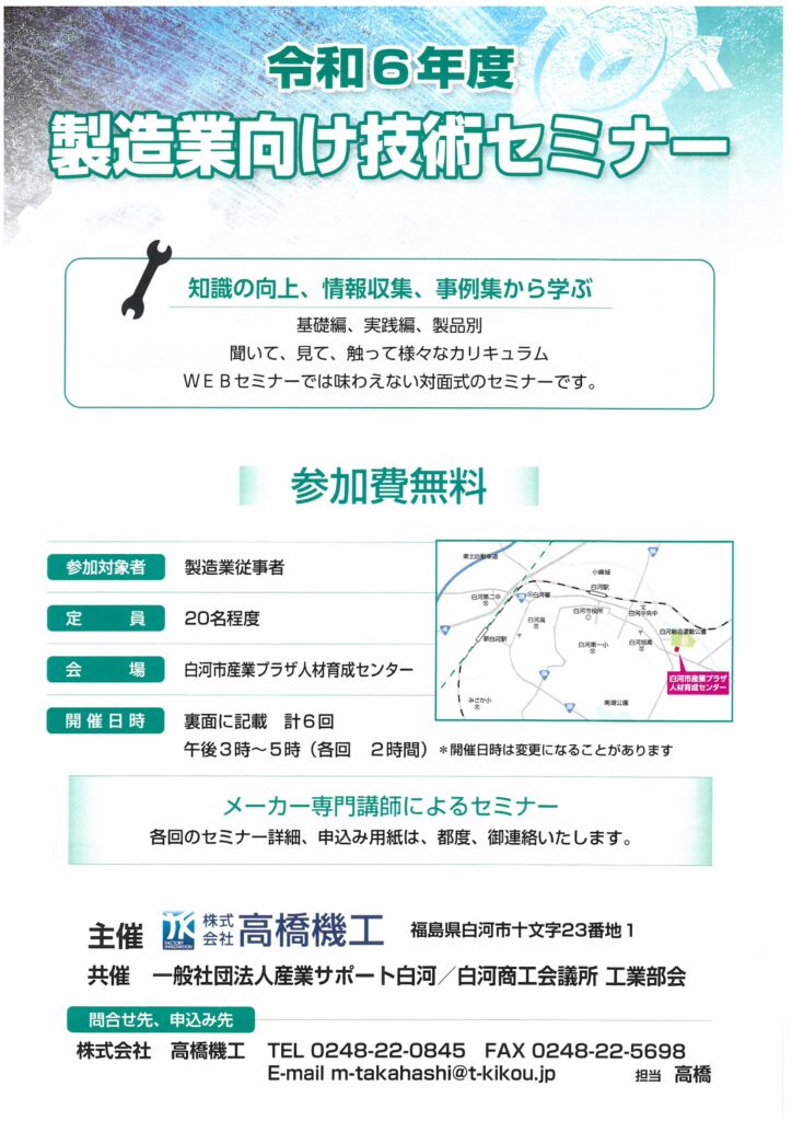 全日程終了しました)株式会社高橋機工 令和6年度製造業向け技術セミナー(12/6新着)