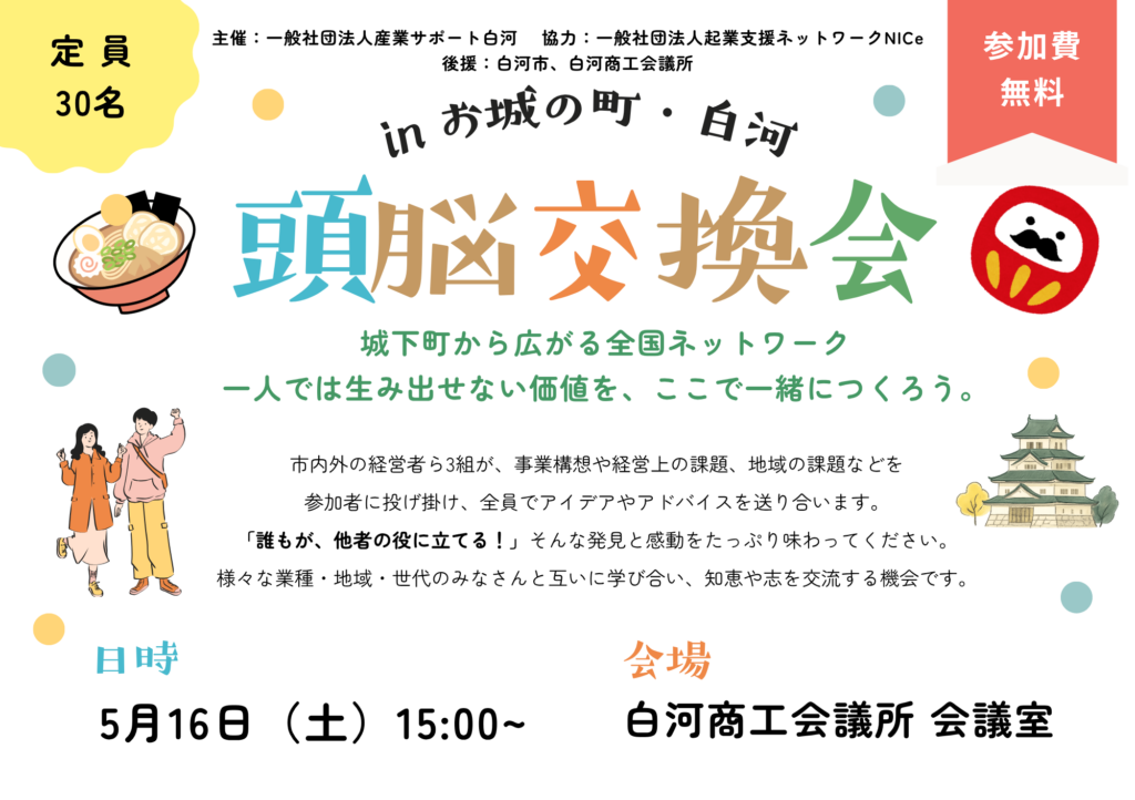 このたび、福島県白河市で、一般社団法人産業サポート白河主催、NICe協力で